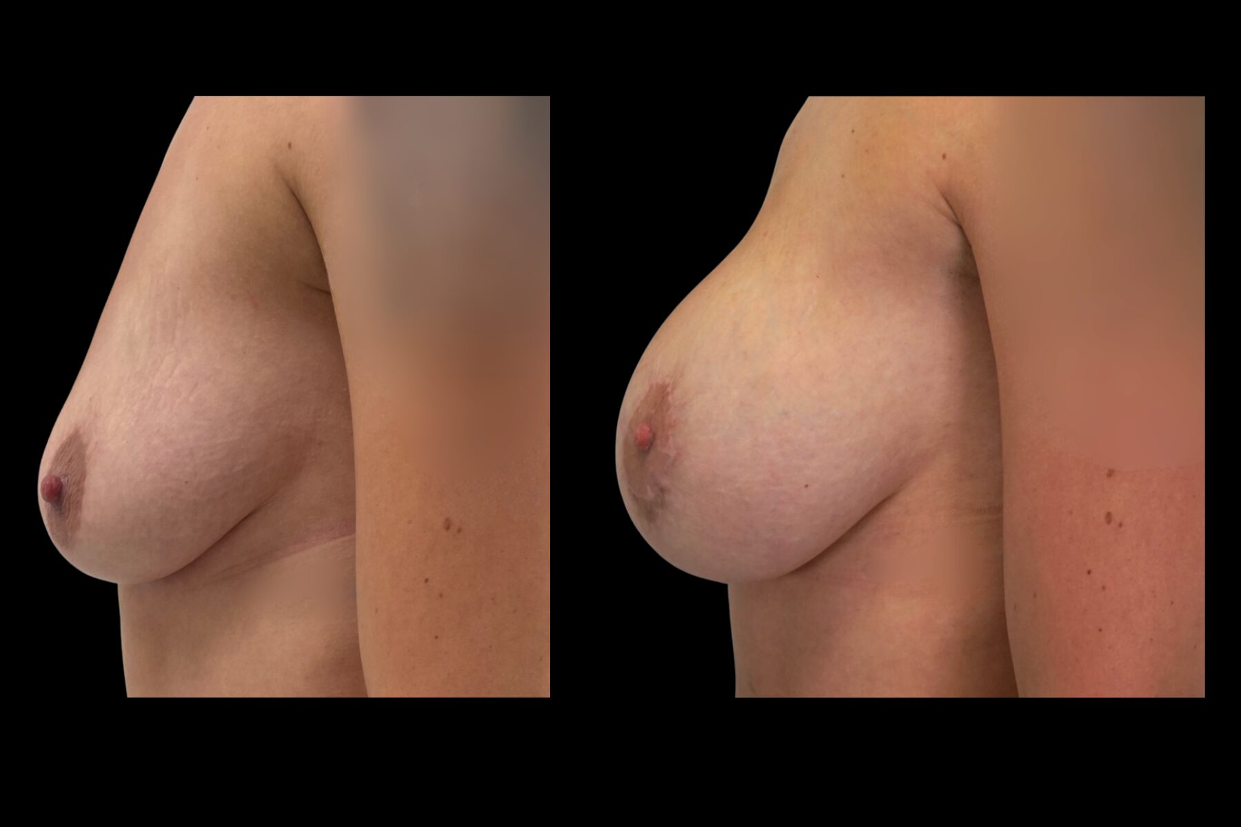 This patient wanted Breast Augmentation while avoiding a full Breast Lift. She underwent a circumareolar Breast Lift instead.