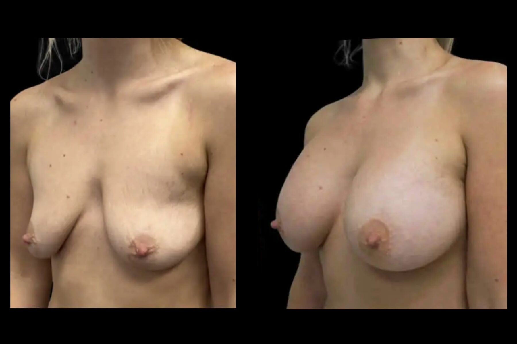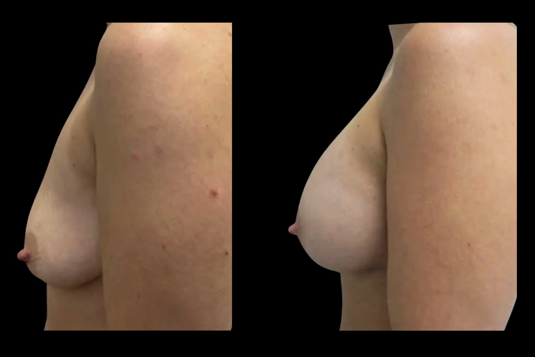 This active 33 year old patient wanted to avoid breast lift scars, and chose to undergo augmentation without a lift. Implants were placed dual plane.